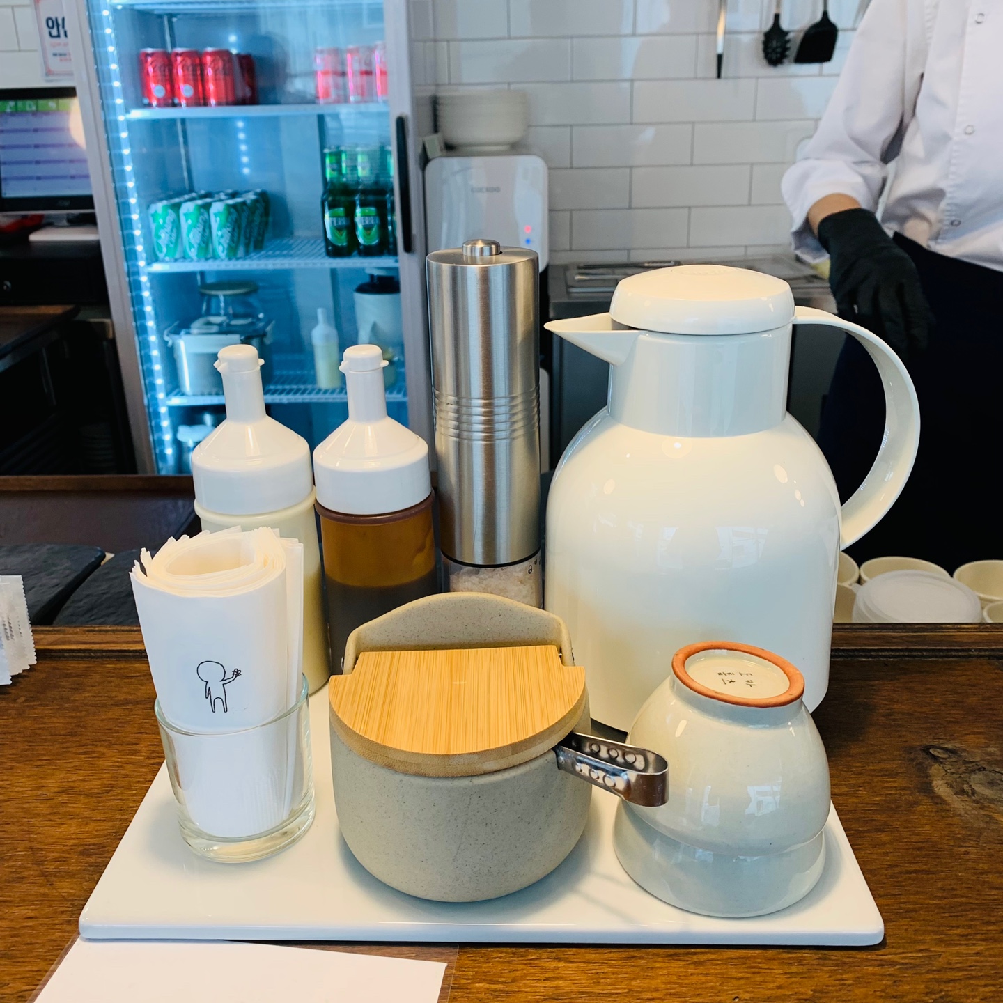 테이블에 착석하면 깔끔하게 소스 등 필요한 물품들이 진열되어 있어요.