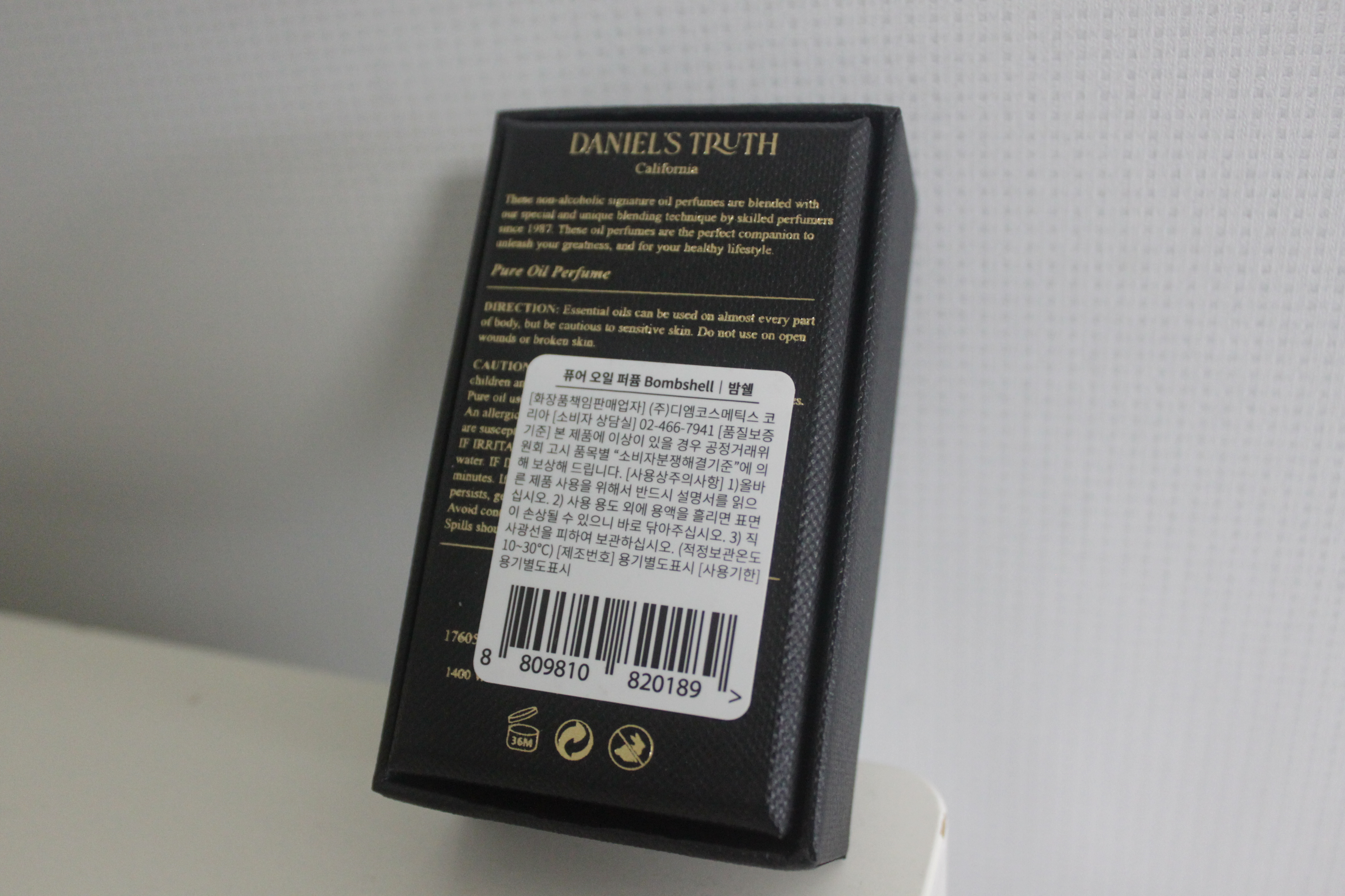 정확한 제품명은 '다니엘 트루스 퓨어오일 퍼퓸 밤쉘 향수' 입니다.