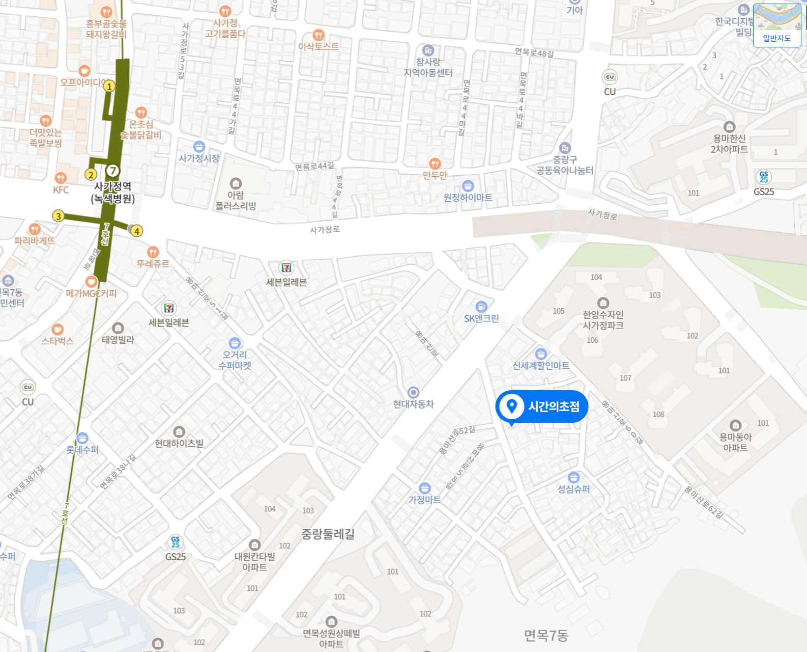시간의초점 위치는 7호선 사가정역 4번 출구에서 도보 10분거리였습니다.